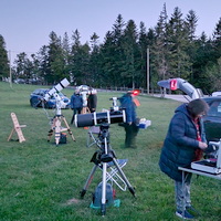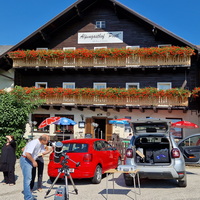 - Fernrohre dürfen aufgestellt werden: Am Parkplatz vor dem Gasthof (bevorzugt bei stärkerem Westwind), auf der Wiese vor und auf der Wiese links neben dem Gasthof. Auf beiden ist reichlich Platz vorhanden.