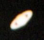 Fotos mit 10"LX 200 + Okularprojektion mit 26mm Okular bei einer eff. Brennweite von ca. 8m (f31) auf Fuji Superia 400ASA. Belichtungszeit für Mond + Jupiter: 1/8sec, Saturn: 1sec (1/2sec wäre besser)