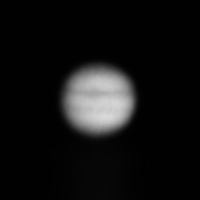 Jupiter, Belichtungszeit 7/1000 Sekunden bei F=3000. Immerhin erkennt man Details in den Wolkenstreifen, aber auch Duchschnittsbildung von insgesamt 6 Aufnahmen brachte keine Verbesserung. |