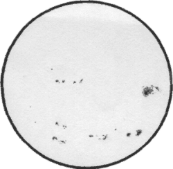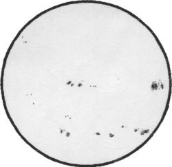 Sonne am 24. April 2000, Skizze. 12.35 - 13.05 MESZ. Bedingungen: Leichte Bewölkung. |