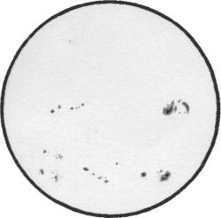 Sonne am 23. April 2000, Skizze. 11.10 - 11.35 MESZ. Bedingungen: Klarer Himmel. Nur mein kleiner Neffe hat gestört, der wissen wollte, was ich mache. |