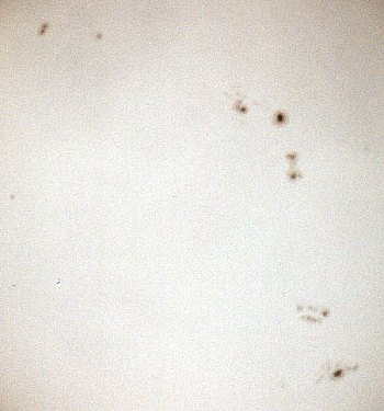 Die Sonne zeigte sich heute mit einigen großen Fleckengruppen in unterschiedlichen Breiten, an sich ein sehr ungewöhnlicher Anblick. Das Seeing war nicht so schlecht wie in den vergangenen Tagen, also wagte ich einige Fotos (die ich hier veröffentlichen werden, wenn sie gelungen sind).