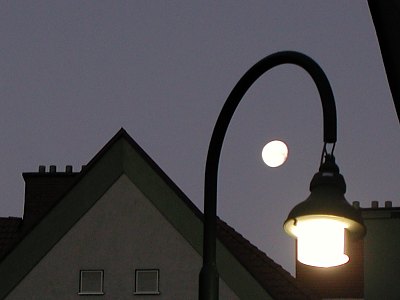 StimmungsbilderNoch immer ganz im Bann der tollen Mondfinsternis erblicke ich in der Morgendämmerung den bereits deutlich abnehmenden Mond. Das kann ich mir nicht entgehen lassen und mache ein paar ganz unastronomische Stimmungsbilder.