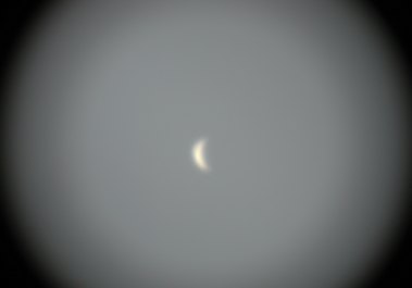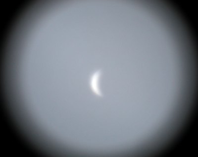 Die Aufnahmen wurden digital nachbearbeitet, vor allem in Hinblick auf die Schäfre (unscharfe Maske), wobei ich darauf achtete, daß keine Artefakte (helle Ringe um die Flecken) entstehen; solche Artefakte sind bei unscharfer Maskierung leider ein unangenehmes Nebenprodukt. VenusErstaunlich der Unterschied zur Vorwoche! Zwar hat sich der scheinbare Durchmesser der Venus nur geringfügig geändert (von 33 auf 37 Bogensekunden), doch die Phase hat sich auffällig verändert: