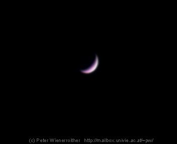 | Bericht: | Nach dem hervorragende Foto-Seminar bot sich noch die Gelegenheit zum gemeinsamen Beobachten. Besonders schön war die schmale, 55 Std. junge Mondsichel. Umringt von neugierigen Wanderern und Kursteilnehmern konnte ich noch ein paar Aufnahmen der Planeten mit der WebCam machen, bevor gegen 19h30 die Wolken dicht machten.
