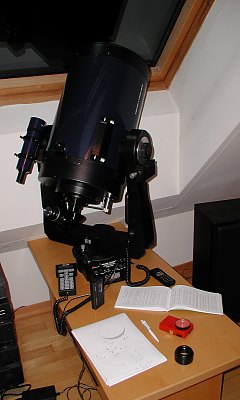 An diesem Abend gab es reichlich Sternbedeckungen durch eine teilweise Bedeckung der Praesepe, und nach langer Zeit habe ich mich dabei wieder betätigt. Das Fernrohr unter dem geschlossenen Dachfenster - auf totale Schärfe kommt es hier nicht an - und bequem sitzend war das nicht sehr schwierig.