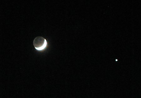 Eigentlich wollte ich heute zum Sternabend im Sterngarten auf dem Georgenberg fahren. Doch dichte Wolken und einige Regentropfen um 19.30 Uhr hielten mich davon ab. Umso größer das Erstaunen, als sich gegen 21 Uhr ein unverschämt klarer Himmel bot, mit stahlblauer Dämmerung und der dünnen Sichel des zunehmenden Mondes neben Jupiter.