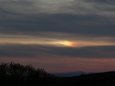 Diese Wolken sind doch prädestiniert für - Nebensonnen! Und da war auch schon eine, und was für ein Prachtexemplar! Ein kleines, aber extrem helles Sonnenspektrum aus (eben nicht ganz) heiterem Himmel sorgt hier für Abwechslung. |