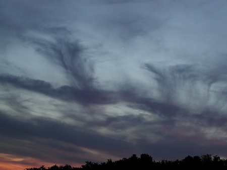 Mutter Natur greift an diesem Abend tief in die Farbkiste und malt Farben und Formen, die wohl auch im Museum für moderne Kunst ihren Platz hätten. Farben dieser Art in der Dämmerung sind für Meteorologen allerdings kein gutes Zeichen. |