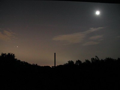 Die Dämmerung beginnt. Mond (überstrahlt), Venus und knapp