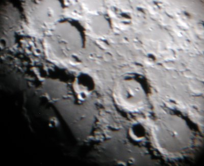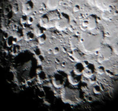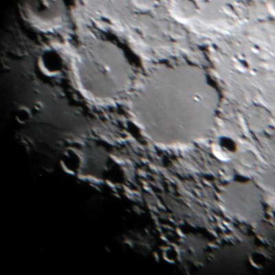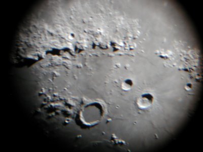 Jetzt ist der Mond an der Reihe. Das Seeing ist nicht so gut wie am Vortag, dafür läuft der Terminator durch ganz tolle Gegenden wie die Apenninen mit dem Krater Eratosthenes an ihrem Ende.