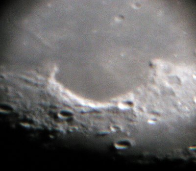 In dem Gebiet zwischen Aristarch und den Harbinger-Bergen konnten wir zwar keine Rillen entdecken, doch am Nordrand des halb versunkenen Kraters Prinz konnte man am äußeren Rand des Kraterwalls Rillen sehen, die am Fuß des Walls entlanglaufen.