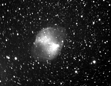 Wenn wir schon in der Nähe sind, darf eine Aufnahme vom Hantelnebel nicht fehlen. Da das Objekt nahe dem Zenit steht, ist die dreiminütige Aufnahme zu stark durch Rotation verzerrt (Bildfeldrotator auf die Liste setzen ...), ich gehe auf zwei Minuten zurück und wende mich dann tiefer stehenden Objekten zu.