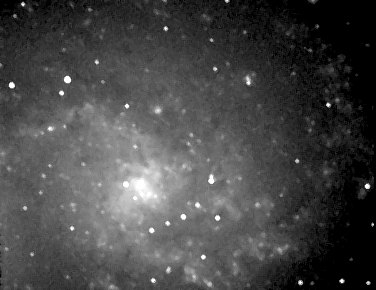 Das war gut. Nur um Objekte zu gruppieren hier eine Aufnahme von M33; ich habe sie meinem Laptop trotz hartnäckiger Meldungen, daß ich die Batterien wechseln soll, doch noch entlockt (die Anzeige ergab, daß ich noch für 36 Minuten Strom hatte - dämliches Warnprogramm! Da wundert man sich, daß Leute Warnungen ignorieren und dann wirklich etwas passiert ...)