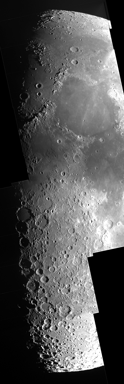 | Bericht: | Anneliese und ich fuhren, von dem schönen Wetter inspiriert und trotz Mondes auf die Sofienalpe. Es sollte sich lohnen... Zunächst einmal machen wir wieder einmal ein paar Spaziergänger mit einem Blick zum Mond glücklich und leisten so der Astronomie einen wertvollen Dienst. Dann mache ich mit der StarlightXpress MX916 und AstroArt, das ich erstmals zum Aufnehmen verwende, ein Panorama vom Terminator - etwas in Eile wegen der heranziehenden Wolken -, um es später mit AstroArt zu einem Mosaik zu machen. Normalerweise ist es nicht meine Art, große Bilder ins Web zu stellen, aber hier konnte ich nicht widerstehen und möchte das Bild - nur leicht komprimiert - dem Bericht hinzufügen. Es ist alles da, bis zur Triesnecker-Rille!!!