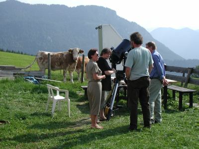 Am nächsten Vormittag - er ist wieder strahlend blau und warm - fahren wir auf die Sternwarte, um einmal in Ruhe zu frühstücken und unsere Geräte abzuholen. Spontan vereinbaren wir mit unserem treuen Freund und Gastgeber Günther Eder - ihm sei an dieser Stelle ganz herzlich für seine Gastfreundschaft gedankt! - für nächstes Jahr gleich vier derartige Beobachtungs- und Seminarwochenenden mit zum Teil ganz neuen Seminarthemen; näheres in Kürze in unserem Programm für 2002, das Anfang September erscheinen wird.