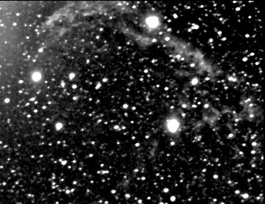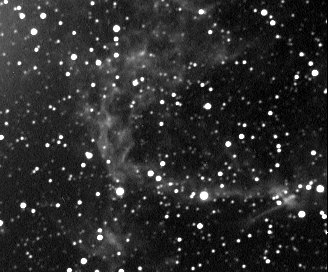 Ein Stück vom Cirrus-Nebel (NGC 6992), wieder Summe von 10 Aufnahmen zu je einer Minute Belichtungszeit. Der ganze Nebel paßt wieder nicht auf den Chip. |