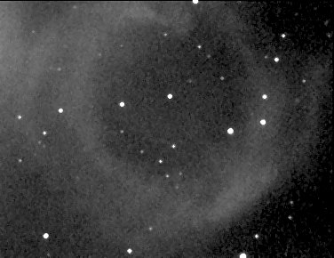 Der Hellix-Nebel NGC 7293. Er ist so groß, daß er selbst bei f/6.3 (F=1890mm) nicht mehr auf den Chip paßt! Summe aus 10 Aufnahmen zu je einer Minute. |