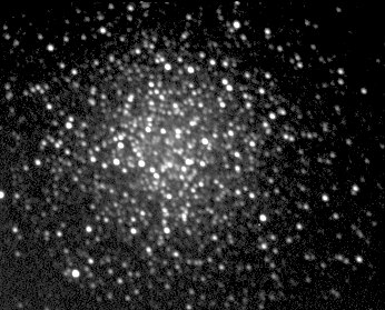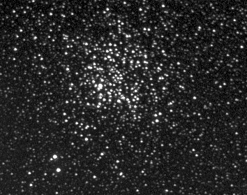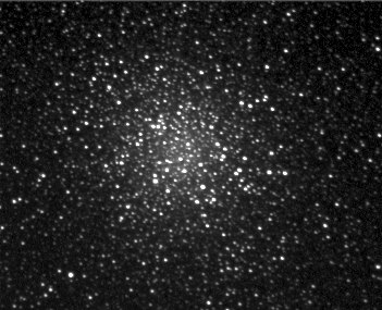 M22, Summe aus 10 Aufnahmen zu je 10 Sekunden. Unscharfe Maske. Schön kommt das diffuse Zentrum dieses großen Kugelsternhaufens heraus. |