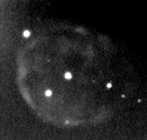 Neptun und Triton, technische Daten wie oben. Skurril ist der Feldstern. Sieht aus wie Galileis Zeichnungen von Saturn. Hier war eigenartiger Weise das Seeing viel schlechter als bei Uranus. |