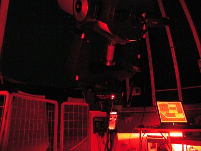 Ich beobachtete das erste Mal allein auf der Sternwarte; zwar eingeschult, aber so manches fällt einem ja doch erst ein, wenn man es braucht. Oder auch nicht. Daher war die Hotline zu Günther oft gefragt; wo schaltet man eigentlich den Strom für den Computer ein? Wie lautet das Kenntwort? (Für alle Neugierigen: Ich schreibe es natürlich nicht in den Bericht!) Wo ist die Steuerbox für das LX-200. Die "Bodenstation" beantwortete geduldig alle Fragen ...
