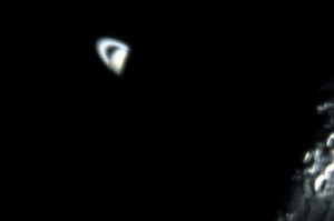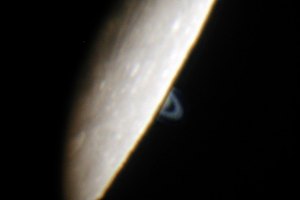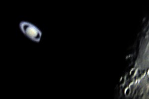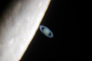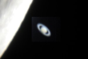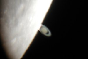 Jetzt wird es ernst - Saturn wird bedeckt; bei den nachfolgenden Aufnahmen wurde Saturn künstlich aufgehellt, wodurch am Mondrand Artefakte entstehen: