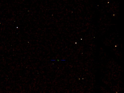 | Bericht: | Bereits im Feldastecher schön zu beobachten, durch die Aufhellung Richtung Süden (Donau - Krems?) ist keine Chance gegeben ihn freisichtig zu erkennen. Im Nexstar 8 mit 40 mm Okular bietet er einen schönen Anblick. Der kleine Schweif ist gut zu erkennen. Einen Versuch habe ich noch gestartet: Einfach meine Digitalkamera auf das Fernrohr geschraubt, maximales Zoom (optisch und digital) und danach 60 Sekunden belichtet. Tatsächlich zeigte sich zuhause, dass er als kleiner grünlicher Nebelfleck abgebildet war.