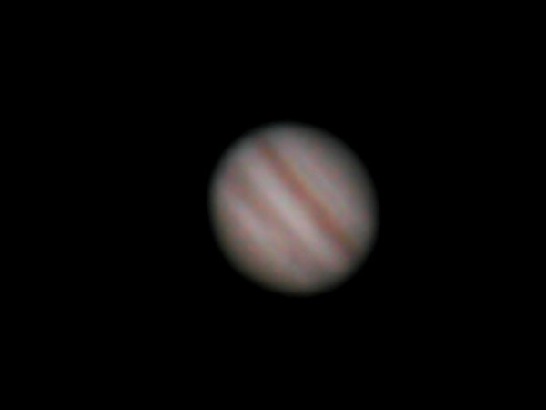 | Bericht: | Die Vorgeschichte habe ich ja bereits geschildert. Hier dann die Ergebnisse. Auch am zweiten Platz zog Nebel auf, der sehr viel Kontrast und auch Schärfe kostete, dabei war das Seeing recht gut. Jupiter zeigte seinen Großen Roten Fleck einmal wirklich rot, sodaß ich fast einen Chip voll an Aufnahmen verschoss, in der Hoffnung, eine brauchbare würde dabei sein. Nund, die beste, folgt hier: Fazit 1: Schöner Himmel auf Punkt A bedeutet nicht notwendigerweise schönen Himmel auf Punkt B Fazit 2: Man muß schon sehr verrückt sein, wenn man bei nicht ganz eindeutig guten Bedingungen gleich zweimal ein 12" LX-200 auf- und wieder abbaut.