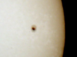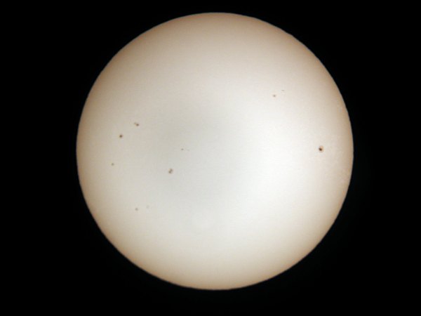 | Bericht: | Eine e-Mail von Anneliese, in der sie mich auf viele Sonnenflecken aufmerksam gemacht hatte, ließ mich nach längerer Zeit wieder einmal einen Blick auf die Sonne werfen. Nachdem ich diversen Schmutz, der sich im Lauf der Zeit angesammtlet hatte, aus Zenitspiegel und Okular elimiert hatte, konnte ich die zahlreichen dunklen Flecken auf der Sonne wirklich als Flecken identifizieren. Die Sonne ist wieder aktiv! Ich zückte also die Digitalkamera und hielt das Geschehen im Bild fest. | ||||||||||||||||||||||
