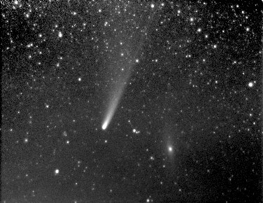 | Bericht: | Unter Tags sieht es ja nicht nach einem Beobachtungsabend aus; doch es besteht Hoffnung. Immerhin nähert sich der Komet C/2002 C1 dem Andromedanebel M31 an, und da ist jeder Abend extrem wertvoll. Also versuche ich es. Auf der Sofienalpe klart es zwar sehr auf, doch es kommt auch ein eiskalter Ostwind auf, der die Beobachtung doch sehr stört. Abgesehen davon, daß es sehr ungemütlich wird. Am Nordhorizont ist es darüberhinaus auch noch recht dunstig, weshalb alles andere als optimale Beobachtungen herrschen. Außer mir haben sich auch nur Anneliese Haika und Herr Dostal auf die Sofienalpe verirrt. Immerhin mache ich einige Aufnahmen mit dem 50mm-Objektiv, die den Kometen mit einigen Grad Schweif dicht bei M31 gut zeigen. Etwas Flatfield- Akrobatik, und das ganze sieht nicht so übel aus. Andere Objekte werden kaum beobachtet, geben wegen des Windes und des schlechten Seeings auch kaum etwas her.