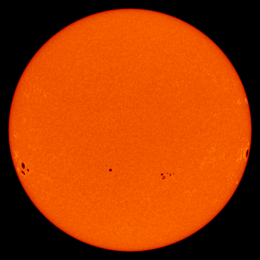 Im Weißlicht sieht man die beiden größten Gruppen jeweils randnah, was auch schöne Eindrücke vermittelt, vor allem von der Struktur der Flecken (Gruppen 8 und 19 lt. SpaceWeather.com). Gruppe 19 ist übrigens jene große. freisichte Fleckengruppe, die schon während der letzten Rotation gut zu sehen war. Aktuelles Bild siehe hier . Im H-Alpha ist die Sonne eine Wucht. "Keine 20 Grad ohne Protuberanz", bringt es Renate Weiland auf den Punkt. Mindestens drei sehr große Protuberanzen, die sich weit über den Sonnenrand erheben, werden von uns lange beobachtet.