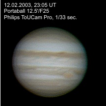 | Instrument: | 12.5" Portaball auf equ. Nachfuehrplattform, Philips ToUcam Pro mit TeleVue | ||||||||||||||||||||||