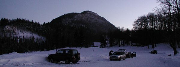 | Bericht: | Ein mächtiges Hochdruckgebiet hat sich über Europa ausgebreitet. Es ist Ende Februar, und die Sonne hat schon so viel Kraft, die Hochnebeldecke aufzulösen. Es ist ein strahlend schöner Samstag. Letzte Wolken lösen sich auf. Der Himmel ist selbst in Wien tiefblau. Der Mond steht im letzten Viertel, geht weit nach Mitternacht auf. Es wird noch recht früh dunkel. Sterngucker-Herz, was willst du mehr? Es geht endlich wieder einmal -- auf die Ebenwaldhöhe! Schon im Vorfeld erfahre ich, daß auch Gerhard Bachmayer und Hans Peter Müllner das gleiche Ziel vor Augen haben. Ich bilde sozusagen die Vorhut. Am späten Nachmittag ist es noch "warm" - es hat Temerpaturen über dem Gefrierpunkt, man wird ja bescheiden. Allerorts schmilzt der Schnee. Bis Kleinzell trockene Straßen. Dann die Abzweigung zur Ebenwaldhöhe. Eine Straße wie in der Wildnis. Schneefahrbahn und gleich zu Beginn Schlaglöcher, die sich auch in Sambia nicht zu verstecken brauchen. Wenig später der Hinweis auf Kettenpflicht. Dank Allrad ignoriere ich ihn, doch wer nur zwei angetriebene Räder hat, sollte den Hinweis vielleicht doch beachten. Die Straße ist ein Eiskanal, nur jeweils eine reifenbreite Spur ist gestreut. Nichts für Sonntagsfahrer! Gerhard, Tahir, Hans Peter und andere kommen aber spielend hinauf. So findet sich eine vermummte Partie - Gerhard, Natalie, später Hans Peter und Pia, Tahir und noch zwei weitere Beobachter auf unserem beliebten Spechtelplatz ein. Die Bedingungen? Hervorragend, bis auf ... den Wind! Der bläst beinhart aus SE, und zwar beständig, nicht böig, aber stark. Gerhards Dob ist nur schwer zu navigieren und ohne Halt wird er zur Windfahne. Auch mein 12" zittert, an Astrofotos ist nicht zu denken. Ein paar Stimmungsbilder ...