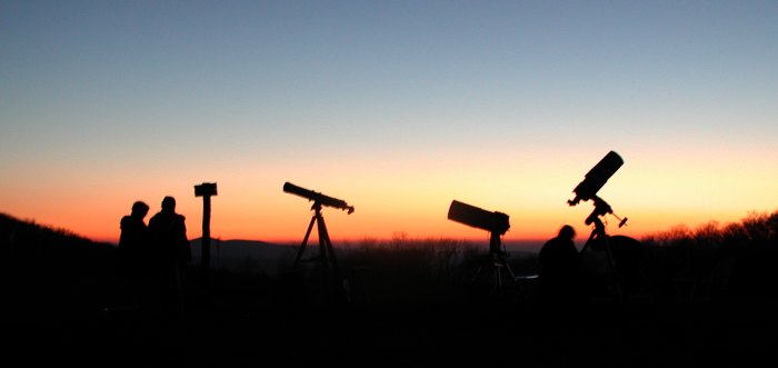 Wieder stabiles Hochdruckwetter, noch dazu mit angenehmen Temperaturen, dazu windstill und wolkenlos, bessere Bedingungen zum Sterngucken gibt es nicht. Daher wundert es nicht, dass heute auf der Sofienalpe eine spontane Star Party entstanden ist; einige Instrumente sind da, dazu die oft hochtechnisierte Ausrüstung. Der Aufbau in der Dämmerung: An Romantik nicht zu überbieten!