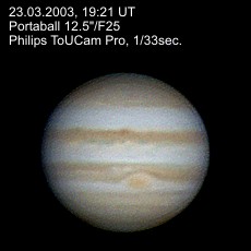 | Bericht: | Die Beobachtungsbedingungen der letzten Nacht wiederholten sich wieder, das Seeing war sogar noch etwas besser, sodass die Webcam wieder einmal mehr zum Schuss kam. Auch dieses Mal gab es einen Transit des GRS zu sehen.