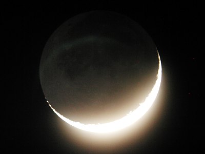 Der Terminator verläuft wunderschön mitten durch das Mare Crisium und im Süden nahe der schönen Viererkette Langrenus - Vendelinus - Petavius - Furnerius. Schon auf dieser Aufnahme kommen die vier Krater mit ihren interessanten Details gut zur Geltung. Deutlich ist auch das aschgraue Mondlicht; allerdings ist es wegen der löngeren Belichtungszeit und der Reflexe im Instrument doch schwieriger aufzunehmen. Mit einer Belichtungszeit von einer halben Sekunde - aus der Hand nicht mehr ganz so einfach - gelingt es aber doch.