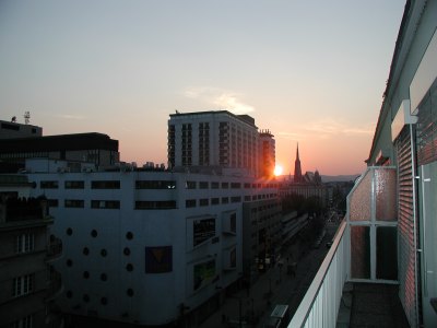 Der Abend ist ja wirklich perfekt. Malerisch geht die Sonne hinter dem Stephansdom unter, und so mancher von uns bekommt nostalgische Gefühle: Ja, das Panorama erinnert stark an die Urania-Sternwarte, die ja keine 300m Luftlinie von hier entfernt ist.