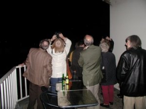 Die Aufnahmen sind erstaunlich, denn sie werden von der nicht gerade erschütterungsfreien Terrasse, auf der sich über 30 Leute bewegen, mit einem nicht richtig aufgestellten und daher nicht exakt nachgeführten C8 mitten aus der Stadt gemacht. Nicht wenige meinen, sich unbedingt auch eine WebCam anschaffen zu wollen. Planetenfotografie mit solch einfachen Mitteln und solchen Ergebnissen, das ist wirklich eine Wucht! Und dann der Ostervollmond! Traumhaft steigt er im Lauf des Abends aus dem Osten empor und sorgt zuammen mit der beleuchteten Stadt für eine mehr als romantische Kulisse.