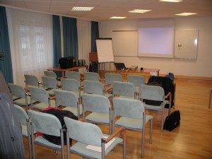 Die wunderschön eingerichteten Räume des Seminarzentrums der Firma Cards & Systems stehen bereit; im 7. Stockwerk, Ecke Landstrasser Hauptstrasse / Untere Viaduktgasse bietet sich ein überwältigender Anblick über Wien. So müßte man wohnen! Aber ein Penthouse in dieser Lage und Größe dürfte die Brieftasche doch erheblich überfordern. Um das Geld kann man auf dem Land 5 Sternwarten bauen ... Umso mehr danken wir der Firma, dass wir einmal im Monat hier zu Gast sein dürfen.