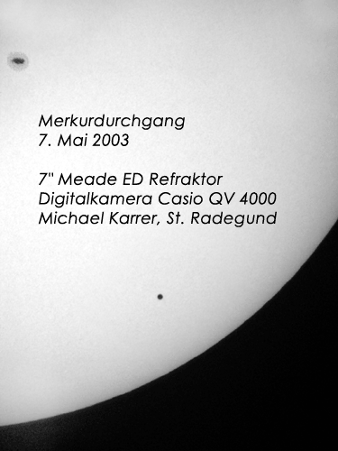 | Instrument: | 7" Meade ED Refraktor, Digitalkamera Casio QV 4000 | ||||||||||||||||||||||