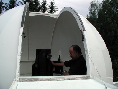 | Der stolze Sternwartenbesitzer öffne die Tür zur Kuppel.