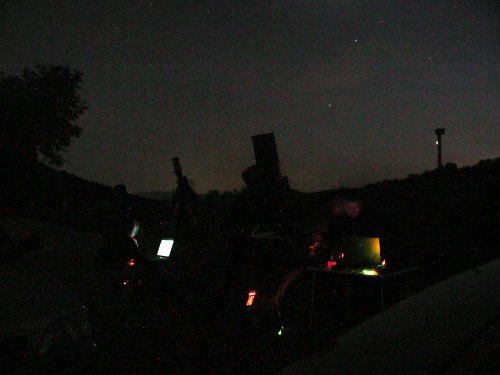 Es wird dunkel und bald sieht man den ganzen kleinen Wagen. Wir erreichen eine scheinbare visuelle Grenzhelligkeit von 5,5 mag, was für die Nähe von Wien recht beachtlich ist. Rund um uns Feuerwerke, zum Glück gibt es direkt auf der Sofienalpe kein Sonnwenfeuer.