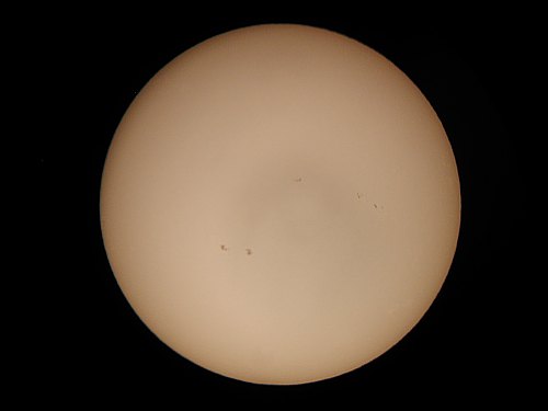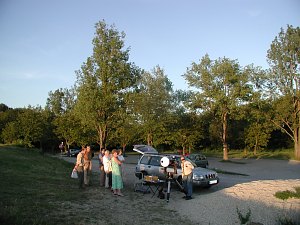 Uff, rechtzeitig zum Ende des Seminars hat sich die Wolke aufgelöst und hinterläßt einen kitschig-klaren Abend. Wir beobachten die Sonne im Weißlich und in H-Alpha - bis zum Untergang!
