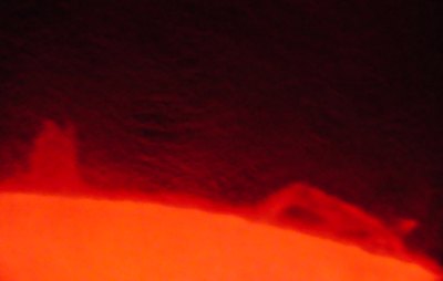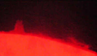 Und wer jetzt noch, was nach Renates Seminar unwahrscheinlich ist, glaubt, die Sonne sei langweilig, wird eines besseren belehrt: Vor unseren Augen türmen sich mächtige Protuberanzen auf und fallen wieder in sich zusammen, und das innerhalb weniger Minuten!
