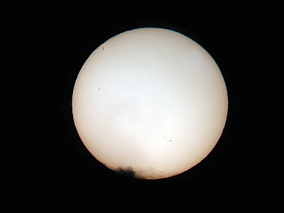 Noch zu Mittag hatte es so ausgesehen, als würden wir nach unserem Seminar Besser beobachten - der Mars nicht beobachten können; wobei wir wegen des morgigen Montags ohnedies nicht in Erwägung gezogen hätten, auf den Mars zu warten. Umso überraschter waren wir, als uns nach dem Seminar im Hotel Sofienalpe ein strahlender Abend empfing, mit der Sonne als erstem Beobachtungsobjekt. Für mich war der Abend auch die erste Gelegenheit, unser "offizielles" WAA-Teleskop, das 10" Meade LX-200 GPS, näher kennen zu lernen. Gar nicht so einfach, doch mit Studium des Handbuchs - unter Vermeidung der deutschsprachigen Übersetzung - gelang dann nach und nach doch alles. Erstes Ziel: Die Sonne; bervor sie untergeht, besser gesagt, hinter den horizontnahen Wolken verschwindet, noch rasch ein Blick durchs Teleskop. Mit Sonnenfilter, versteht sich. Erste Erkenntnis: Wir brauchen auch für den Sucher einen Sonnenfilter, sonst ist das Einstellen eine Qual.