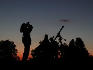 Während die Sonne in einem mehr als malerischen Sonnenuntergang weit im Nordwesten verschwindet, führe ich die GPS-Initialisierungsprozedur am Teleskop durch. Zweite Erkenntnis: Eine überflüssige Prozedur. Der gleichzeitig aufgehende Vollmond - von unserem Standort werden wir ihn erst westentlich später sehen - lockt viele nächtliche Spaziergänger auf die Sofienalpe, die sich teilweise sehr interessiert unserer Gruppe beim Beobachten anschliessen.