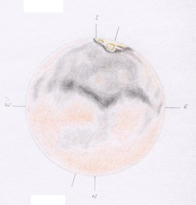 ZM 03h 00m UT: 155,0° Scheinbarer Durchmesser: 24,1" PW Achse: 344,1° Breite Mitte: -19,3° Phase: 0,983 (nicht berücksichtigt) Scheinbare Helligkeit: -2,4mag Höhe Anfang/Ende: 19°/15° Daten UraniaStar 1.1