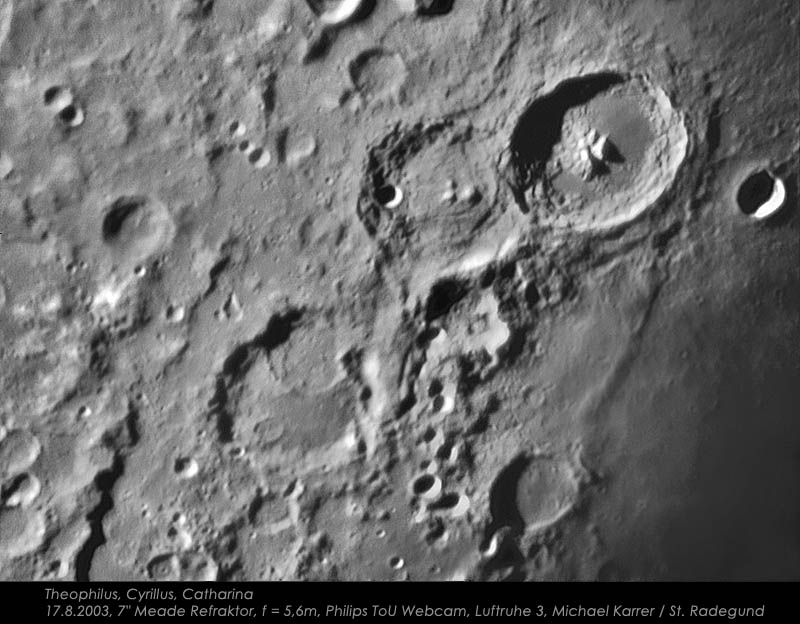 | Bericht: | hallo astrofreunde, Mars war am 17.8. wegen ziemlicher luftunruhe enttäuschend. der höherstehende mond war besser und der für mich seltenere anblick einer abnehmenden phase interessanter. das mosaik aus 4 teilen zeigt eine prominente kraterkette. mfg michael karrer