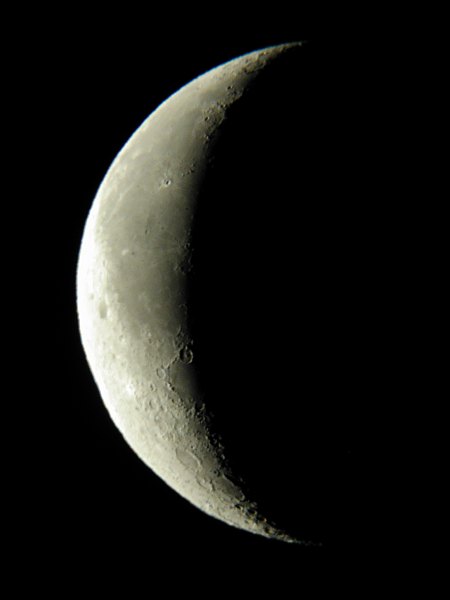 recht dünne Sichel des aufgehenden Mondes zeigt unseren Trabanten