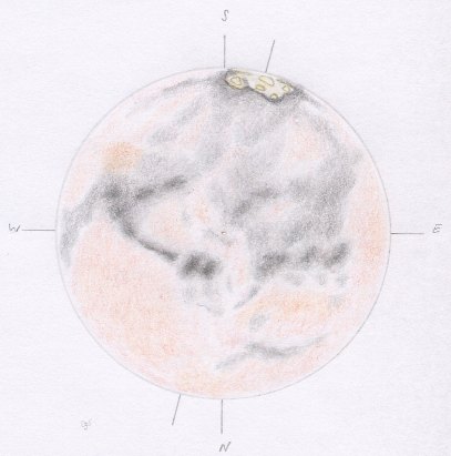 ZM 23h 25m UT: 356,1° Scheinbarer Durchmesser: 25,1" PW Achse: 345,6° Breite Mitte: -18,9° Phase: 0,997 (nicht berücksichtigt) Scheinbare Helligkeit: -2,6mag Höhe Anfang/Ende: 26°/26° Daten UraniaStar 1.1